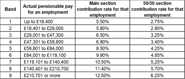 These are calculated by increasing the 2025/26 employee contribution bands by the September 2025 CPI figure of 3.8%, and then rounding down the result to the nearest £100.